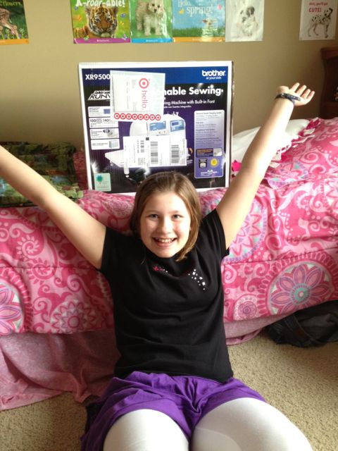 …med posten idag! Äldsta Dottern har fyllt hela 12 år den 29.4 och hon har hett önskat sig en mobiltelefon. Men, se de där gammaldags föräldrarna tyckte att en 12 åring minsann inte behöver sitta med nästan över SMS meddelanden från kompisarna ännu och beställde en symaskin åt lilla fröken istället.