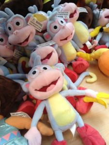 När Lillan var liten blev hon väldigt fäst vid ovanstående apa. Det är Boots från Dora serien. Jag vet inte om han har fått ett svenskt namn i serien där hemma, men här kallas han alltså Boots. Lillan kunde inte prata ännu, men hon kunde säga Adi. Följaktligen fick Boots namnet Adi. Den älskade apan och trasan hängde med överallt och glömdes dessa saker hade vi inte långt till en smärre kris. Lillan använde aldrig tutt, den spottade hon bara ut, men trasan och Adi hade hon!