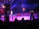 Vi hade bra platser på fjärde raden och barnen såg förväntansfulla ut, trots sin trötthet. Jag hade redan på för hand sagt åt dem att det mesta pratet skulle nog ske på finska, så de var beredda. Föreställningen öppnade med en pilskjutande karl och hans assistent. De var båda imponerande, han med sin träffsäkerhet och hon med sina konster att gunga i rep högt uppe i cirkustältet. Hon gungade både rätt väg, upp och ner, ner och upp, fastbunden på alla möjliga sätt etc. Cirkus Finlandia bjöd på ett bra program i överlag tyckte jag. Dock fanns det åtminstone två nummer som jag tyckte att de hade kunnat skippa: En kvinna som var sexigt klädd i svart (konst?)läder som inte gjorde mycket annat än kråma sig på en motorcykel och sedan stå på händerna några ggr. Det var faktiskt inte särskilt imponerande. Det andra numret som inte imponerade var lindansören från Australien. Han klarade nog av en del, men jag tyckte han verkade lite väl grön i vissa övningar. Mera träning behövdes!