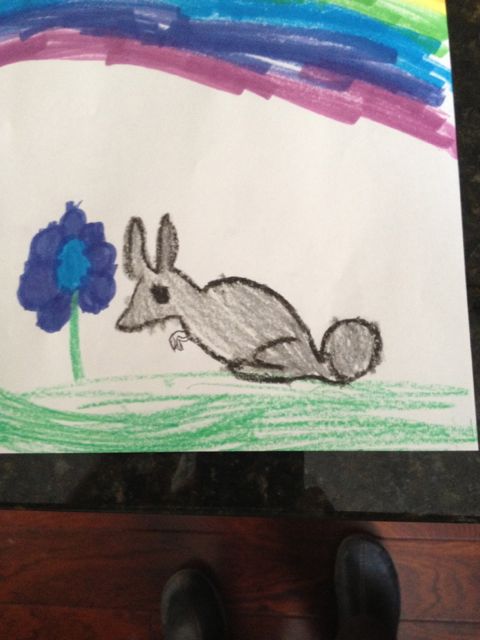 Han ser lite mager ut. Kanske det beror på den kalla och snörika vintern som gjort att han magrat och inte hittat särskilt många morötter. Vem vet? Dock tyckte jag att Lillan hade ritat honom väldigt bra! 🙂