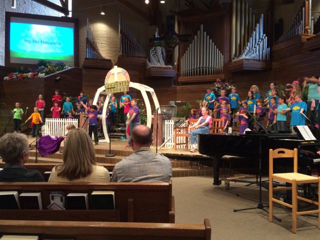 Och så vidare då till söndagen. På förmiddagen uppträdde då både Sonen och Lillan med sina resp. barnkörer med musikalen i kyrkan. De framförde musikalen två ggr, under tians gudstjänst och den som hålls kl.11.15. Bra gick det också och kyrkan var sgs fullsatt båda gångerna som barnen uppträdde. Sonen, som innerst inte faktiskt är rätt blyg av sig, ville inte ha ngn roll, utan sjöng ‘bara’ med i kören. Lillans kör, den yngsta barnkören, sjöng två sånger strax innan musikalen började. Fammo och faffa kom för att höra på under den andra gudstjänsten, så det tyckte Sonen var väldigt roligt.