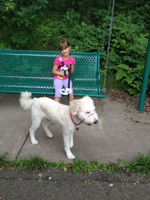 Jag tog barnen till en av parkerna här nära. Till och med hunden fick följa med tillsammans med fyra barn, två cyklar och två sparkcyklar. Det var fullt i bilen, minsann!