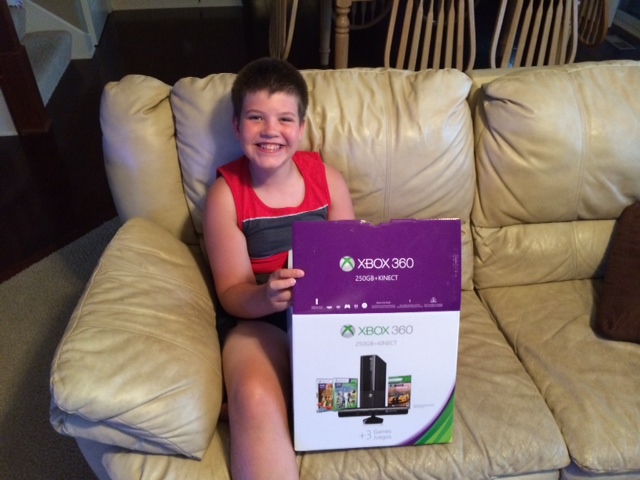 För ca. 1 vecka sedan uppnådde han målet! Han hade sparat ihop tillräckligt med pengar för att inhandla en XBox 360 åt sig själv! Nåja, nu hade han faktiskt inte sparat ihop $300 USD, men i våras hade jag lovat honom att vi kunde betala hälften om han lyckades spara ihop hälften och nu hade han alltså lyckats!