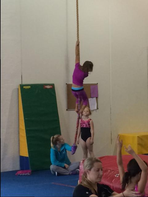 Här nedan syns Lillan på repet. En lycklig Lillan som, tillsammans med sina övriga kompisar i gymnastikgruppen, fick klättra uppför repet i lördags. Det var första gången hittills under hösten som gymnastikeleverna gjorde detta och de tyckte detta var så skoj!