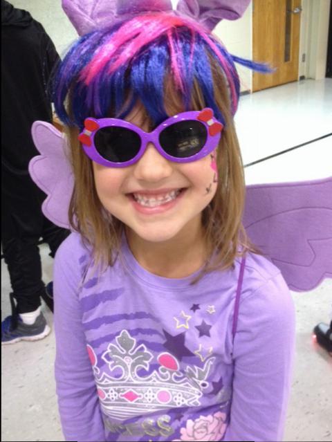 Lillan utklädd till en av ponnyhästarna i ‘My Little Pony’