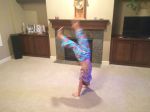 … bjuder Lillan på när hon håller på att lära sig att gå ner i brygga från det att hon har stått på händerna. Imponerande tycker en stolt mamma! ( Det var pappan i huset som agerade fotograf.)
