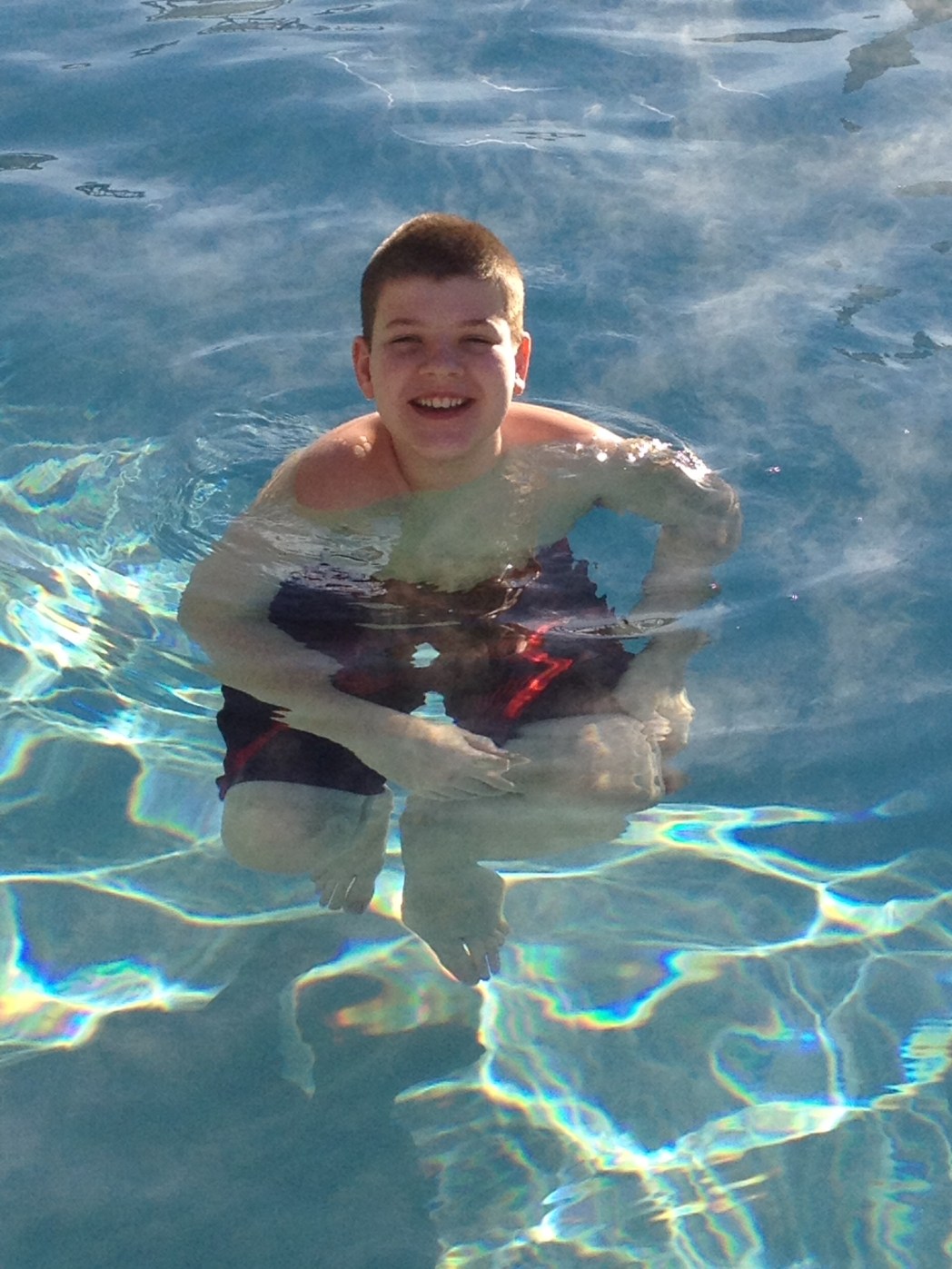 En glad Son var den första i vattnet vid niotiden.