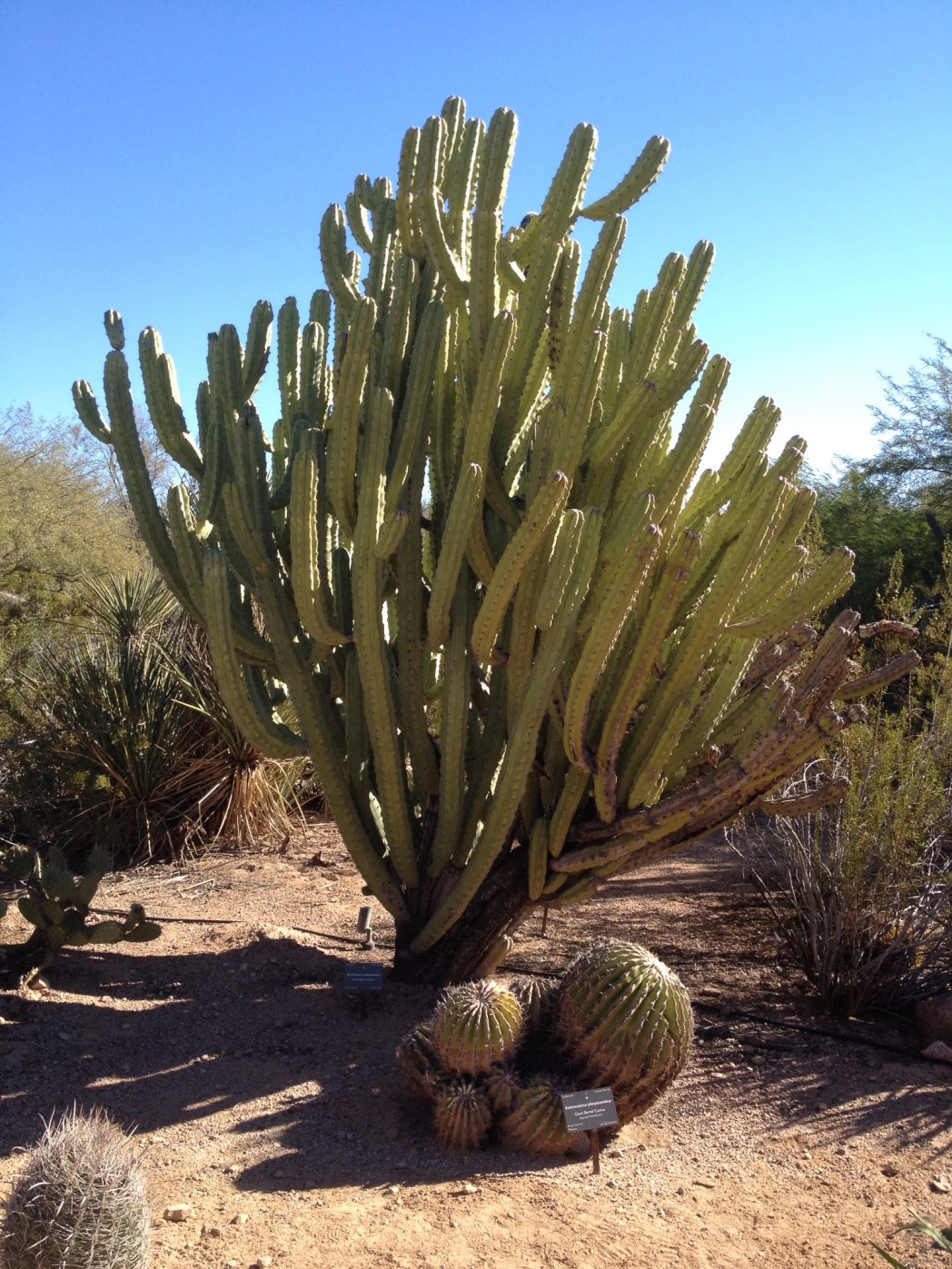 Dagens eftermiddag spenderades vid Desert Botanical Garden. Vi besökte den också senaste vår när vi befann oss här i Arizona. Eftersom både jag och Maken har vuxit upp och bott på nordligare breddgrader hela våra liv, finner vi växtligheten här i Sonora öknen väldigt intressant och fascinerande. Barnen tyckte också att dagens besök var intressant och strövade glatt och länge omkring bland de olika kaktusarna och den andra växtligheten.