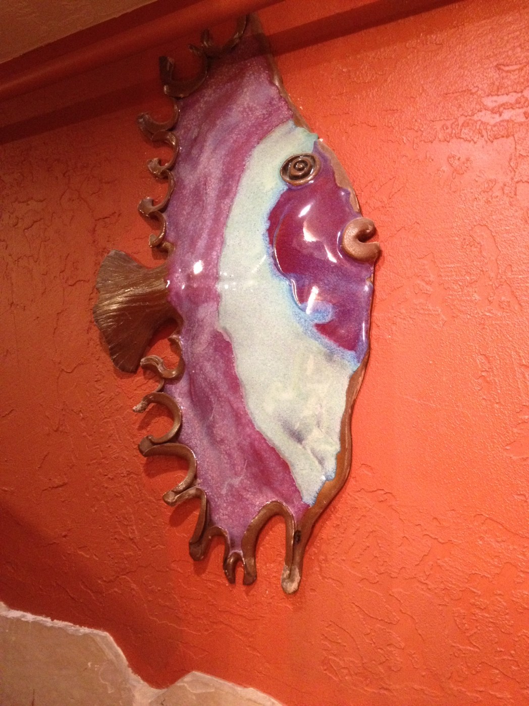 Denna jättelika fisk prydde väggen på damtoaletten på El Encanto.