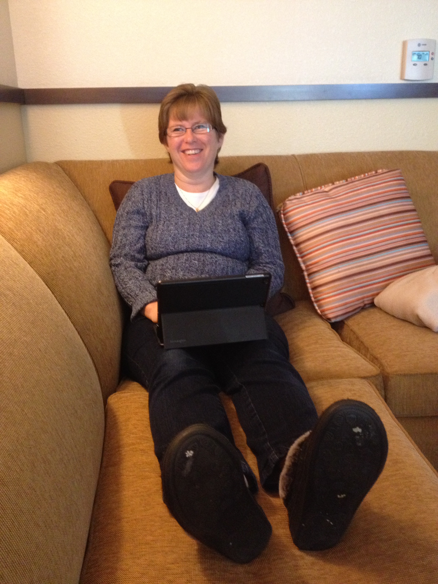 Här sitter jag på soffan i hotellet och väntar på att de svala temperaturerna utomhus skall bli lite varmare, så att barnen kan ta sig ett sista dopp i simbassängen innan vi åker iväg till svägerskans för en sista dag innan flyget tar oss hem till Minneapolis imorgon, lördag. Jag sitter och bloggar på min nya skrivmaskin! Nja, skrivmaskin är det ju inte försåts, men Maken köpte en ny Ipad åt mig som jag har använt hela veckan då jag har skrivit mina inlägg. Eftersom han redan har en bärbar dator tyckte han att vi inte behövde en till sådan, utan istället köpte han ett tangentbord som kopplar till min nya Padda via Bluetooth till julklapp åt mig. Den fungerar perfekt som en liten dator! Jag är mer än nöjd och känner mig mycket lyxig! Roligt att använda den är det. Lätt att använda och ha med sig är den också. Ser fram emot ett trevligt och rikligt bloggår 2015! Skål!