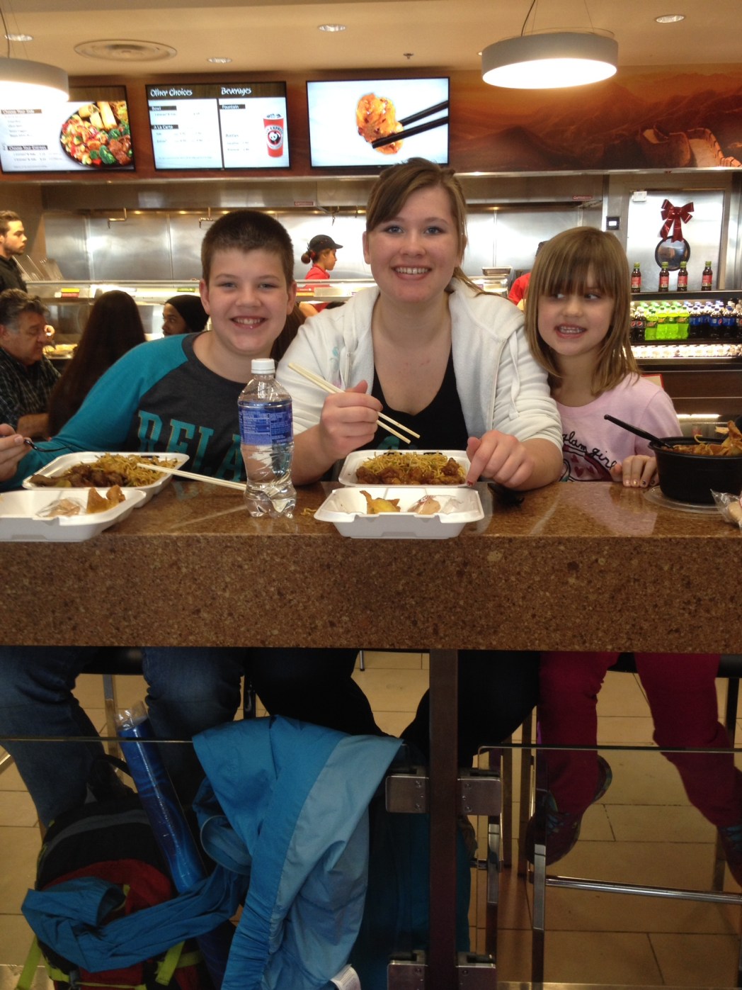 Barnen ville ha asiatisk mat och vi hittade Panda Express som serverade kinesisk mat. Alldeles bredvid fanns det en restaurang som serverade sallader och smörgåsar och Maken och jag beslöt oss för att gå den rutten istället.