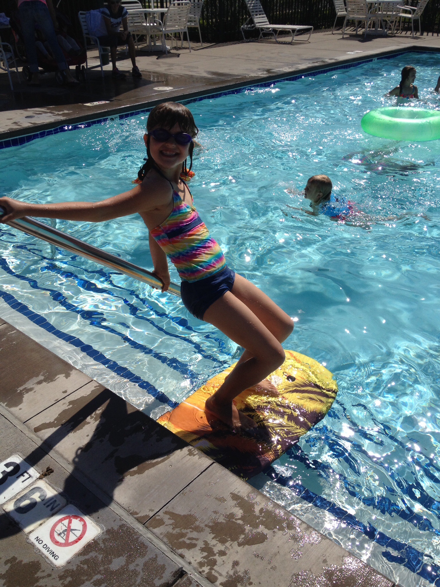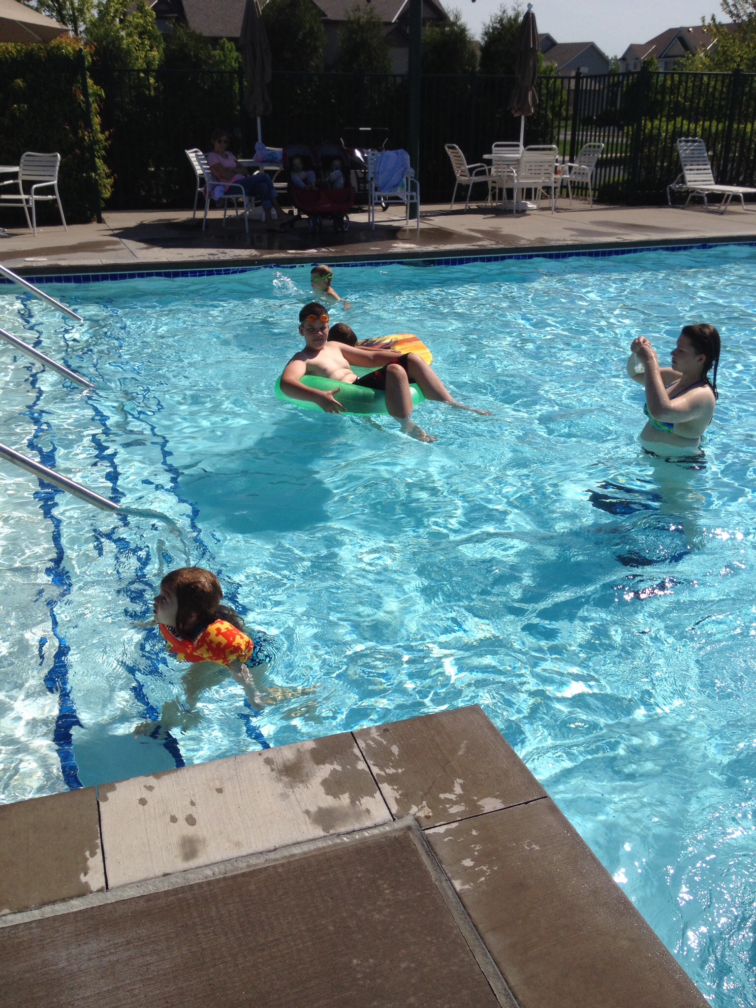 Det var bara att följa de ivriga barnen in i huset och leta reda på simdräkten. Det verkade ju lite knasigt att inte gå ner till simabssängen denna första, lediga dag på långhelgen då vädret dessutom samarbetade. Barnen  har ledigt på måndagen också pga Memorial  Day, som kan liknas vid ‘De stupades dag’.