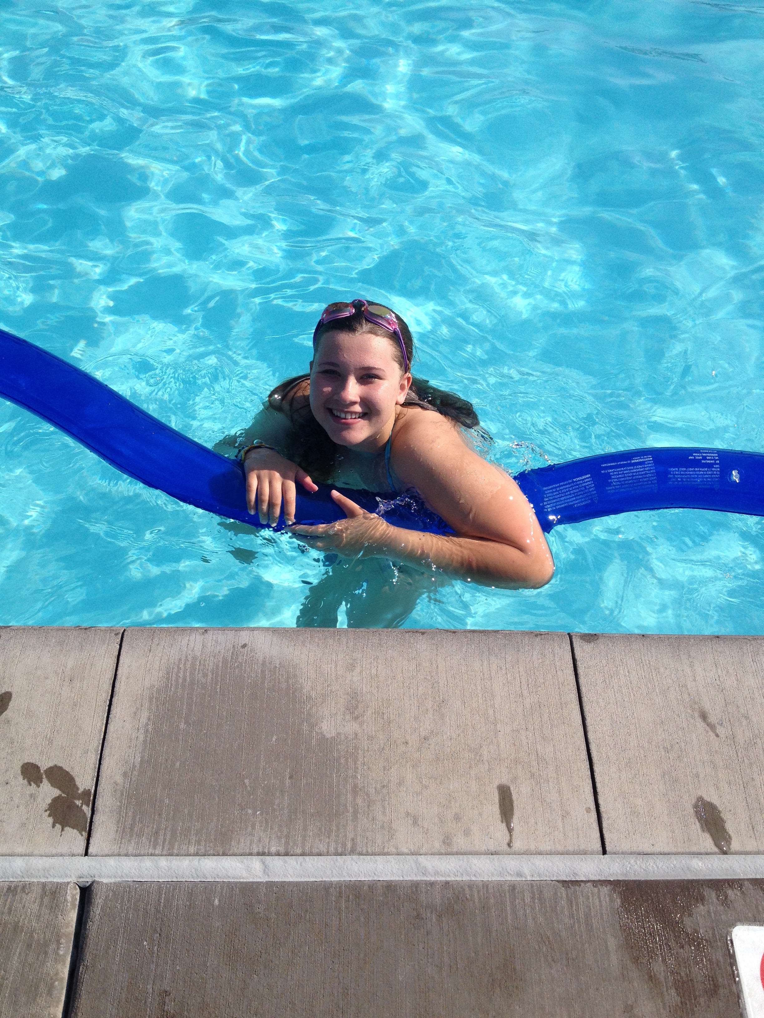 Vi gick hem, bytte våta simkläder mot torra kläder, gav hunden hennes middag och åkte iväg.