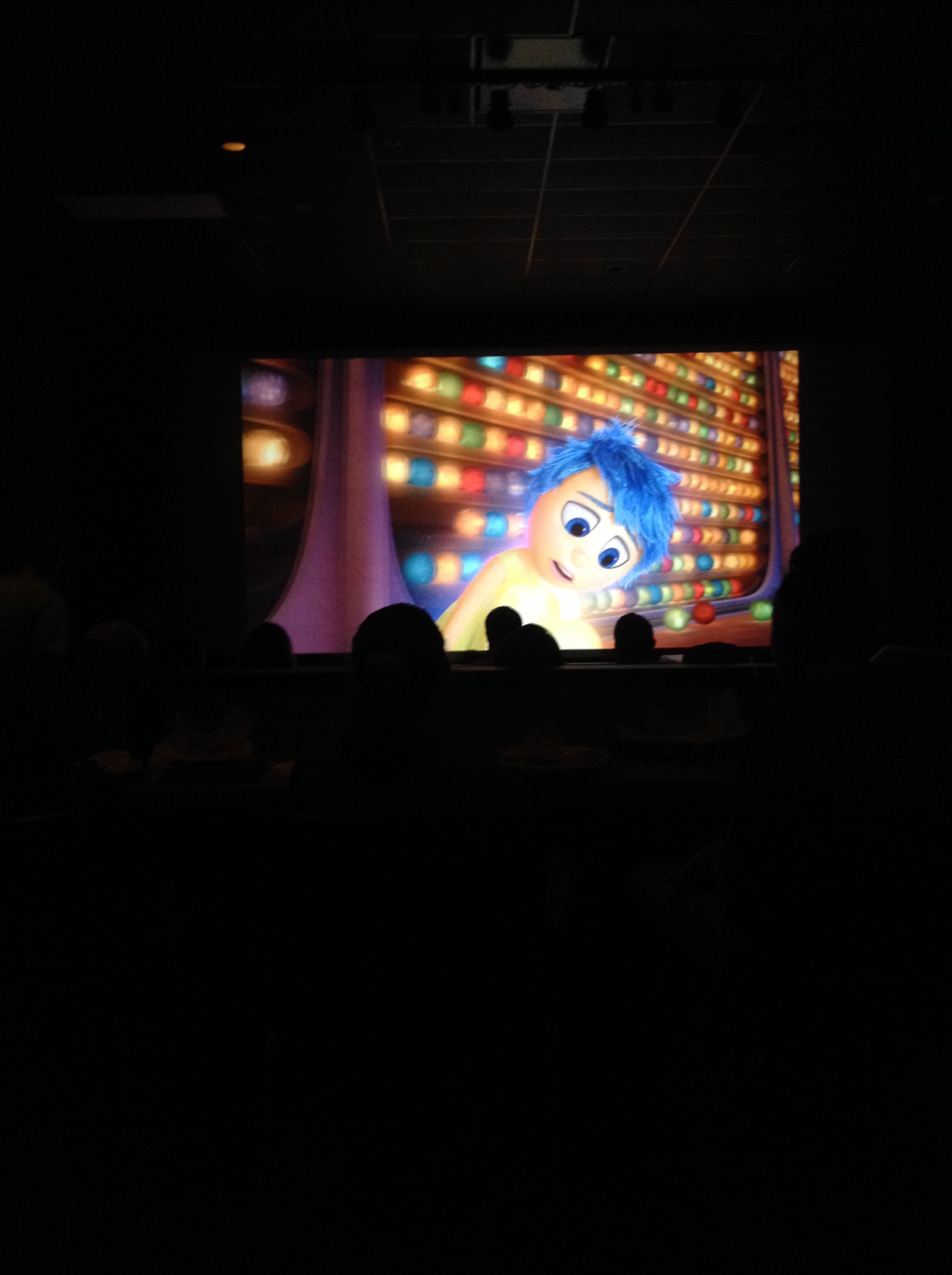 Det visade sig att filmen var riktigt bra- för de vuxna i publiken. Filmen handlar ju om känslor och tankar som pågår i 11 åriga Reillys huvud och dialogen pendlar mellan dessa figurer inne i huvudet, Reilly själv, hennes föräldrar och sedan också figurerna inne i föräldrarnas huvuden!