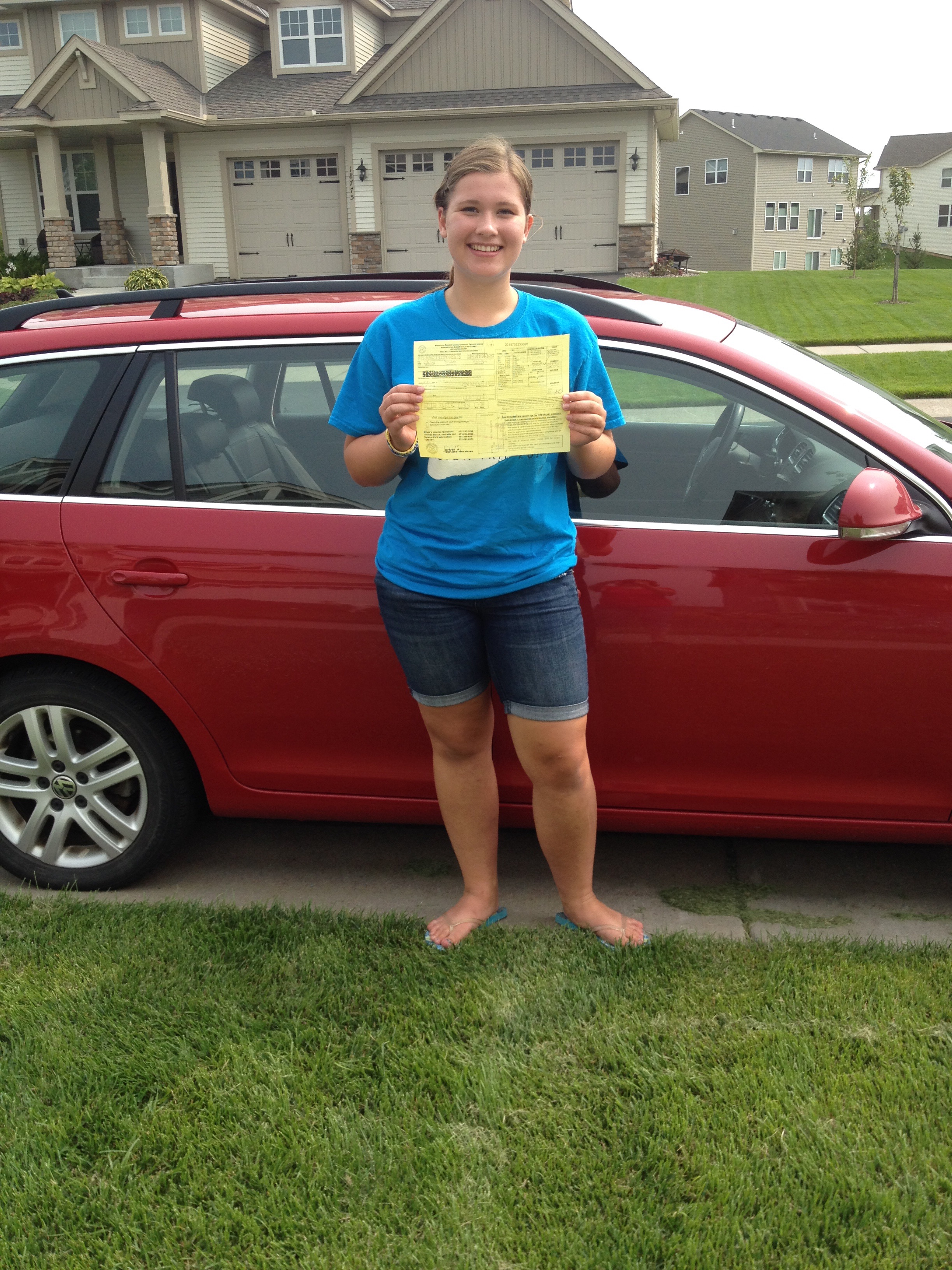 Jaaaa! Hon klarade det skriftliga provet galant och efter att vi köat i all evighet, så fick hon sitt papper. Körtillstånd! Min lilla, stora Dotter, nu fyllda 15 år har rätt att övningsköra så länge en vuxen är med. Hur i all världens tid hände detta?