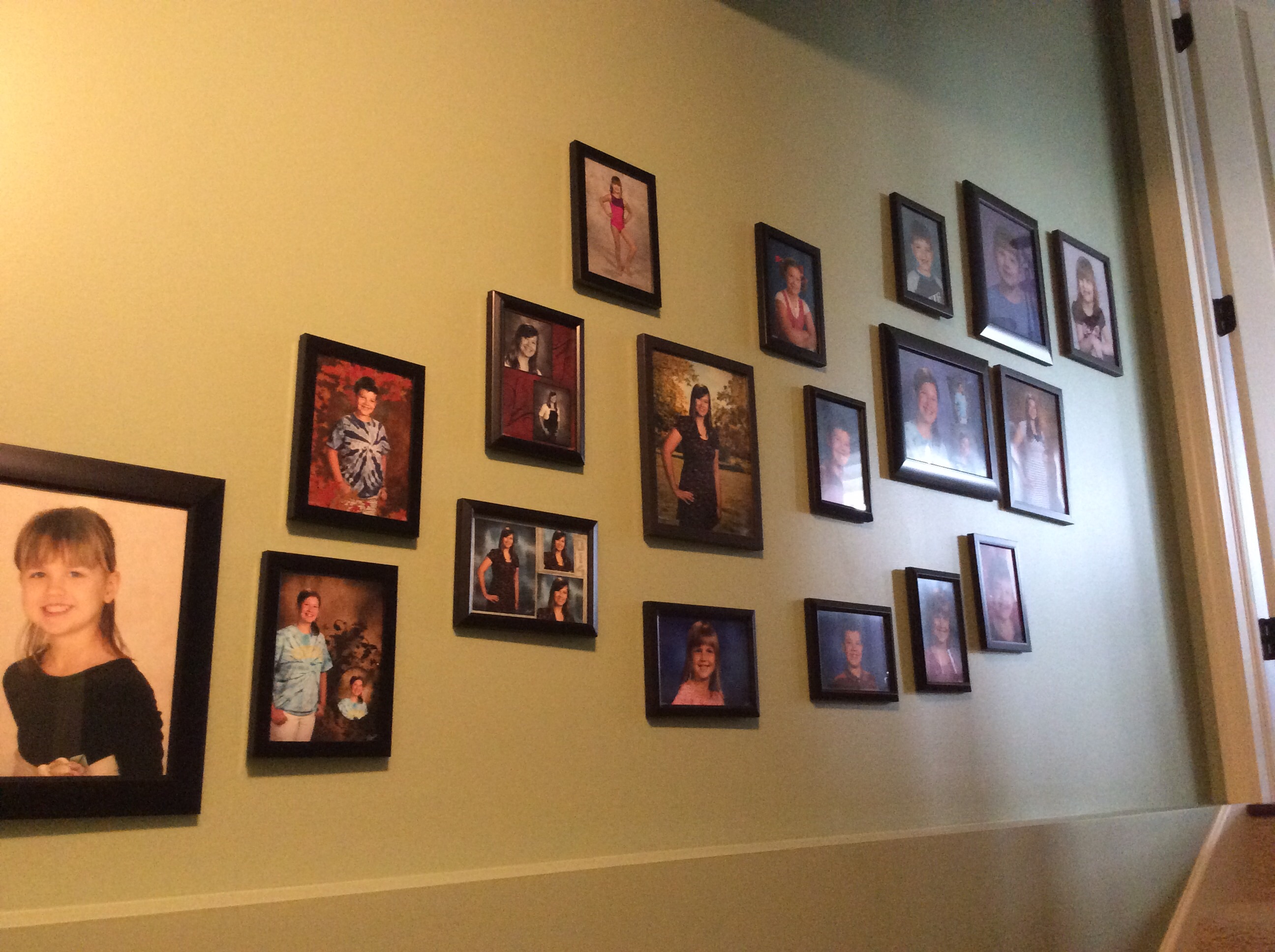 Hallbeslysningen är ju kanske inte den bästa och nu ser jag ju på bilden att en del av fotografierna hänger lite snett, men det går ju lätt att fixa. En helheltsbild får ni ju i alla fall! 😉