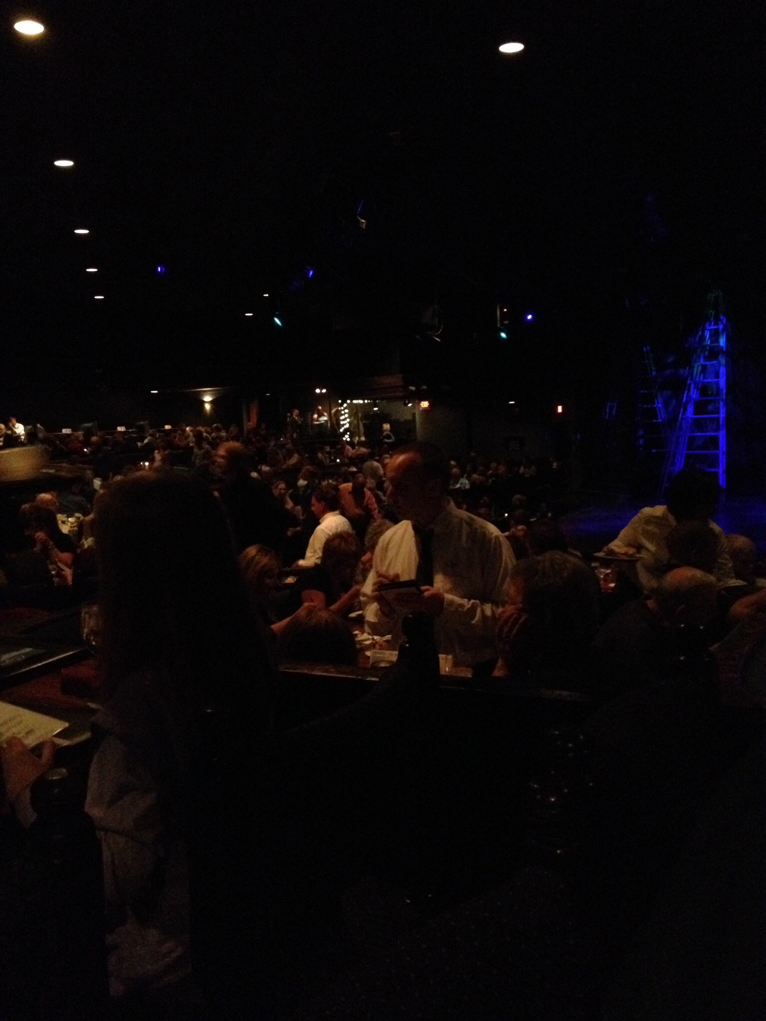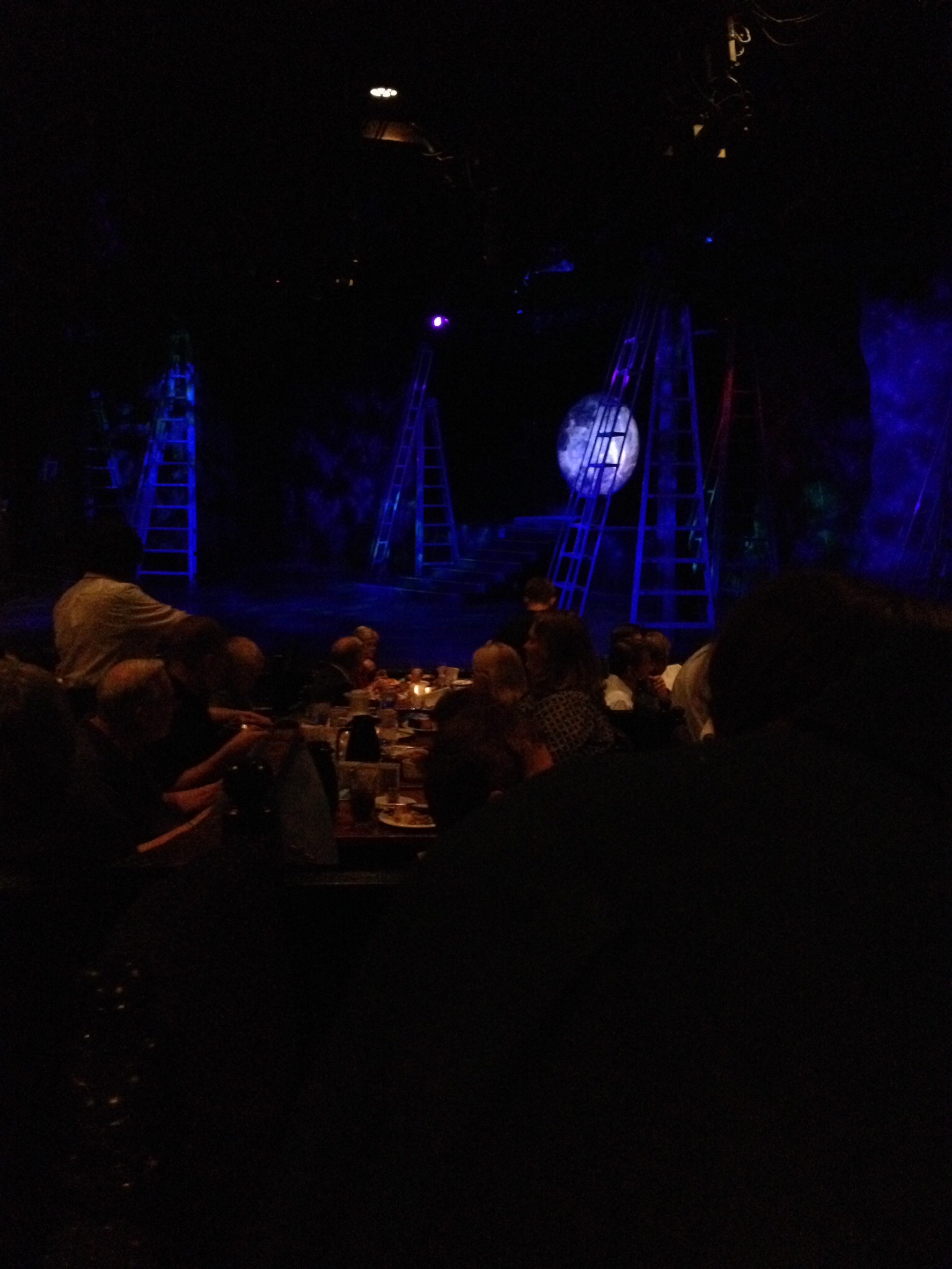 Redan vid 16 tide nsatte vi oss i bilen fast förestälningen inte började förrän kl.18.30, men middagen skulle servera först. Middagen ingick i bljettpriset och hela stället är byggt som en restaurang med scenen framför alla borden. Först äter man och sedan börjar föreställningen. Ingen mat serveras under föreställningen.