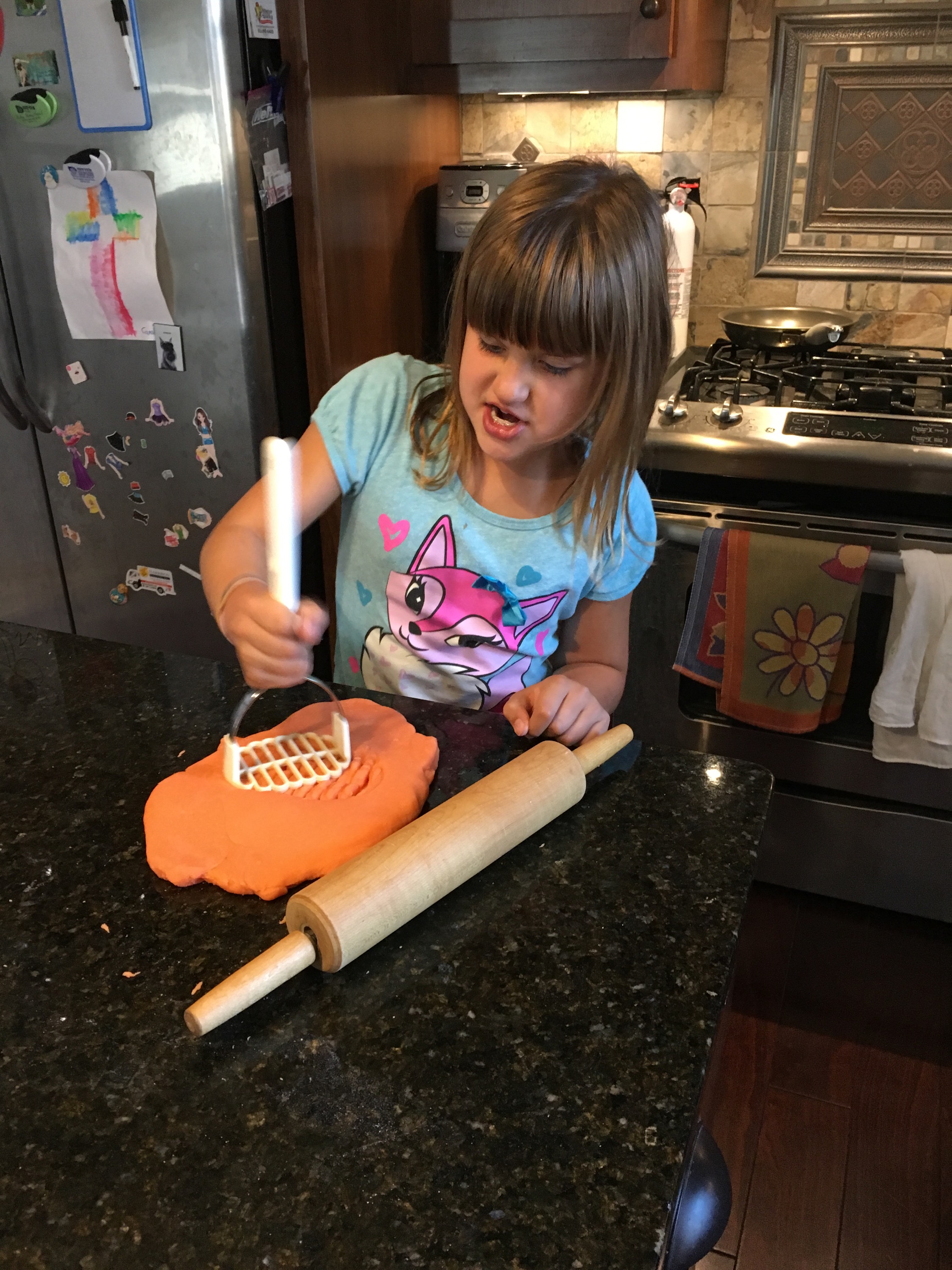 När man har en mamma som jobbar som dagisstant får man vara den som inviger den nykokta modell leran ganska ofta och det brukar sjuåringar inte tacka nej till! 😃