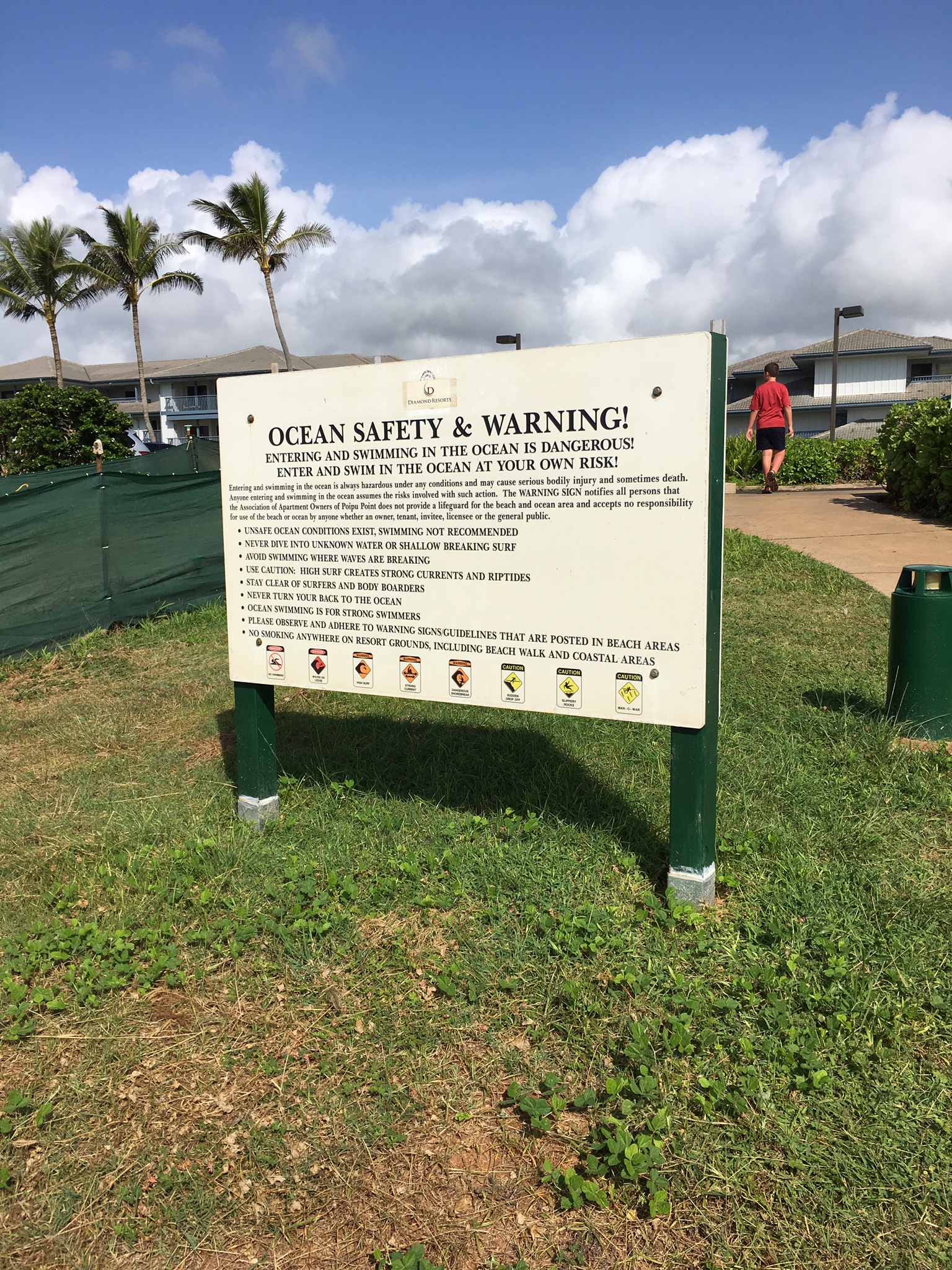 Den berättade att denna strand inte har några livvakter utstationerade och man fick simma på egen risk om man valde att simma. Hotellet skulle inte hållas ansvarigt under några som helst omständigheter om man valde att simma på denna strand och  om något oförutsett hände.