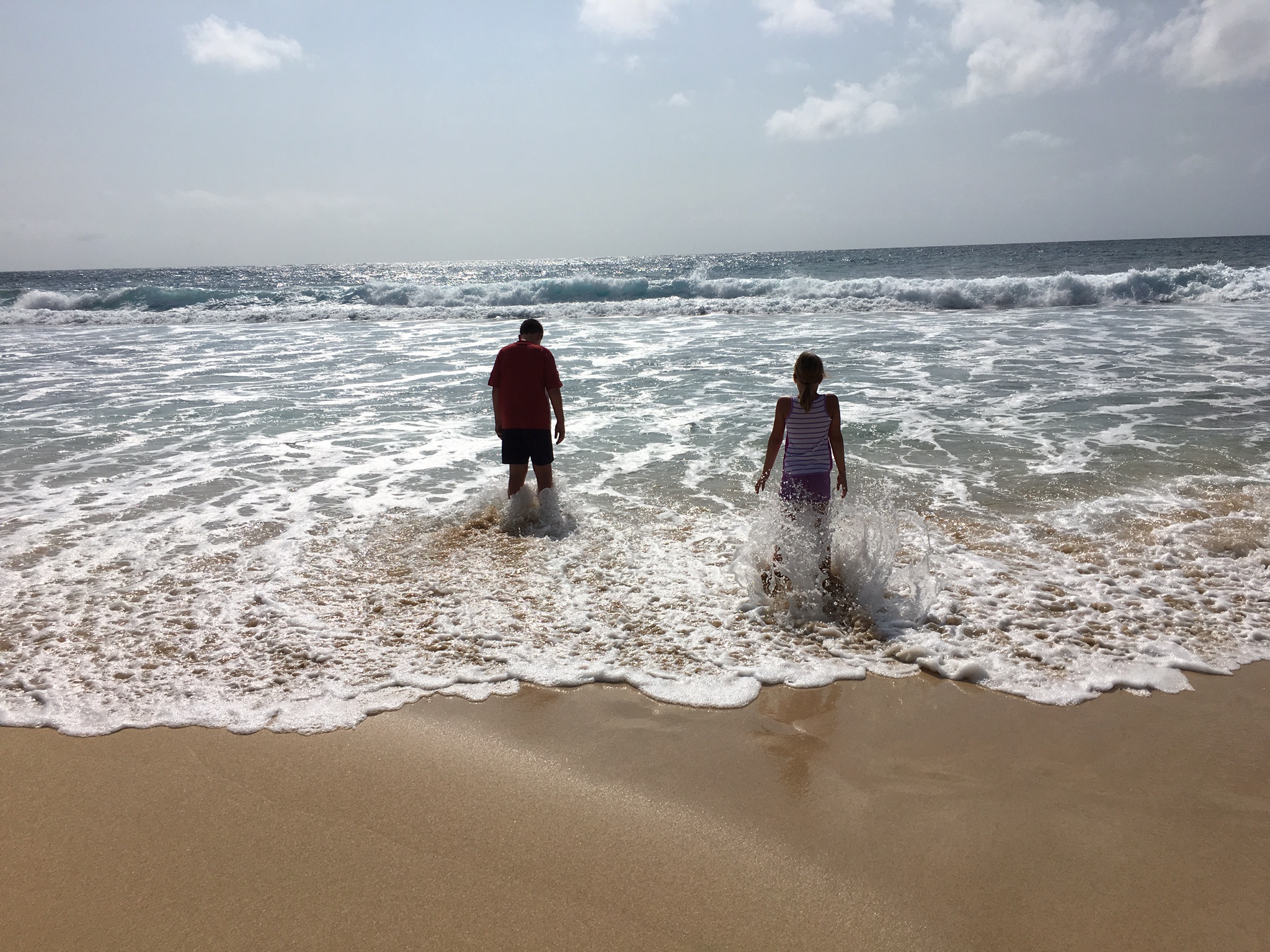 Lillasyster och Sonen trivdes helt förträffligt och det störde inte dem det minsta att de inte fick simma. De vadade, hoppade och lekte i vågorna!