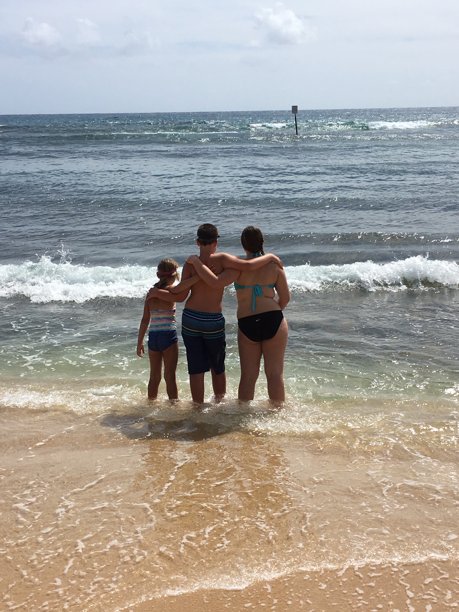 Efter en stunds plaskande i det grunda, salta vattnet ( hade ingen aning om att Stilla Havet är SÅ salt? Månne Atlanten är lika salt? Gissar att så är nog fallet.) gick barnen ut i vattnet för att simma och  vi överraskades nästan direkt av Lillasyster rop: