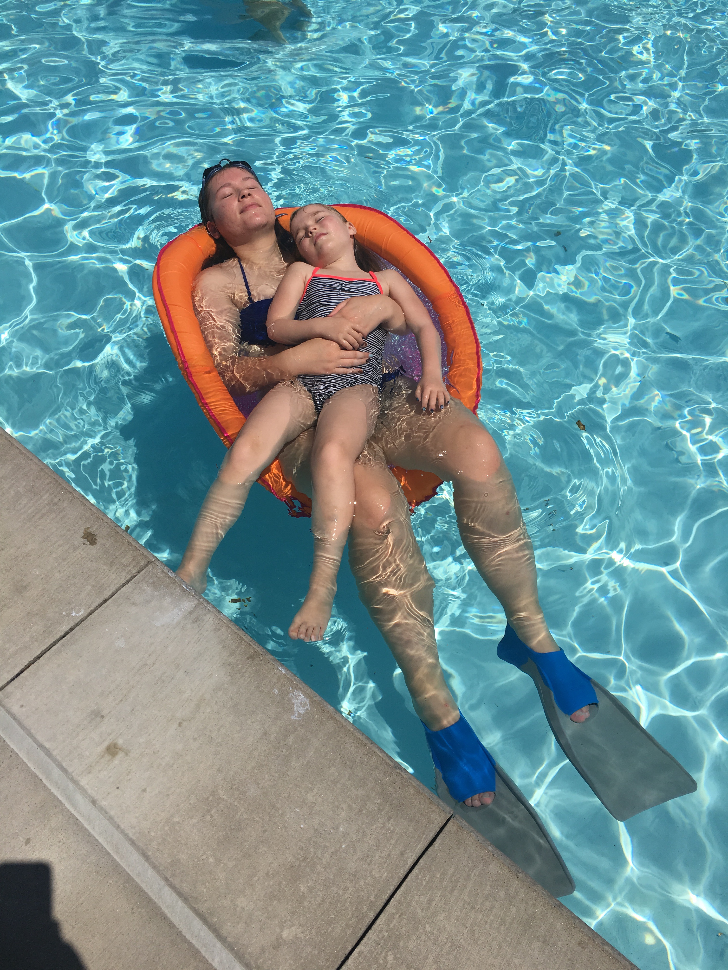På bilden ovan syns Dottern med Kusin i simbassängen. När det blir så här varmt finns det egentligen två val: slappa i vattnet eller hålla sig inomhus i det svalare huset.