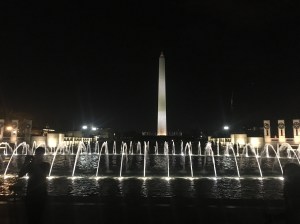 På kvällen var monumentet otroligt vackert med så mycket vatten som var upplyst i kaskader och sedan det ståtliga Washington Monument i bakgrunden.