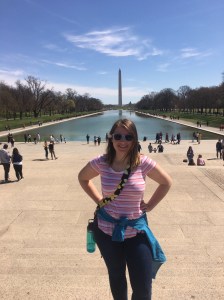 Dottern framför the Reflecting Pool och Washington Monumentet.