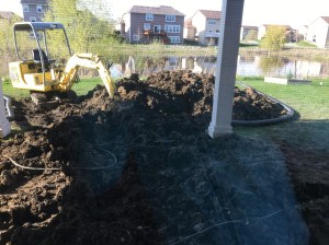 Titta vad jag hittade på bakgården då jag kom hem från jobbet! Grävandet har påbörjats trots allt regnandet den senaste tiden! Ägaren till företaget skickade en del av sina hårt arbetande karlar till att påbörja vårt projekt eftersom vi har behövt vänta på att detta eviga regnande skall sluta.