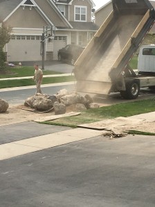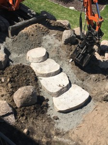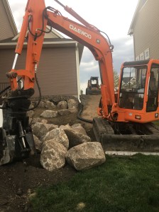 Denna maskin är också grymt bra att ha när stenbumlingar behöver flyttas och det skall byggas terrasser bakom garaget för att förhindra ytterligare erosion…