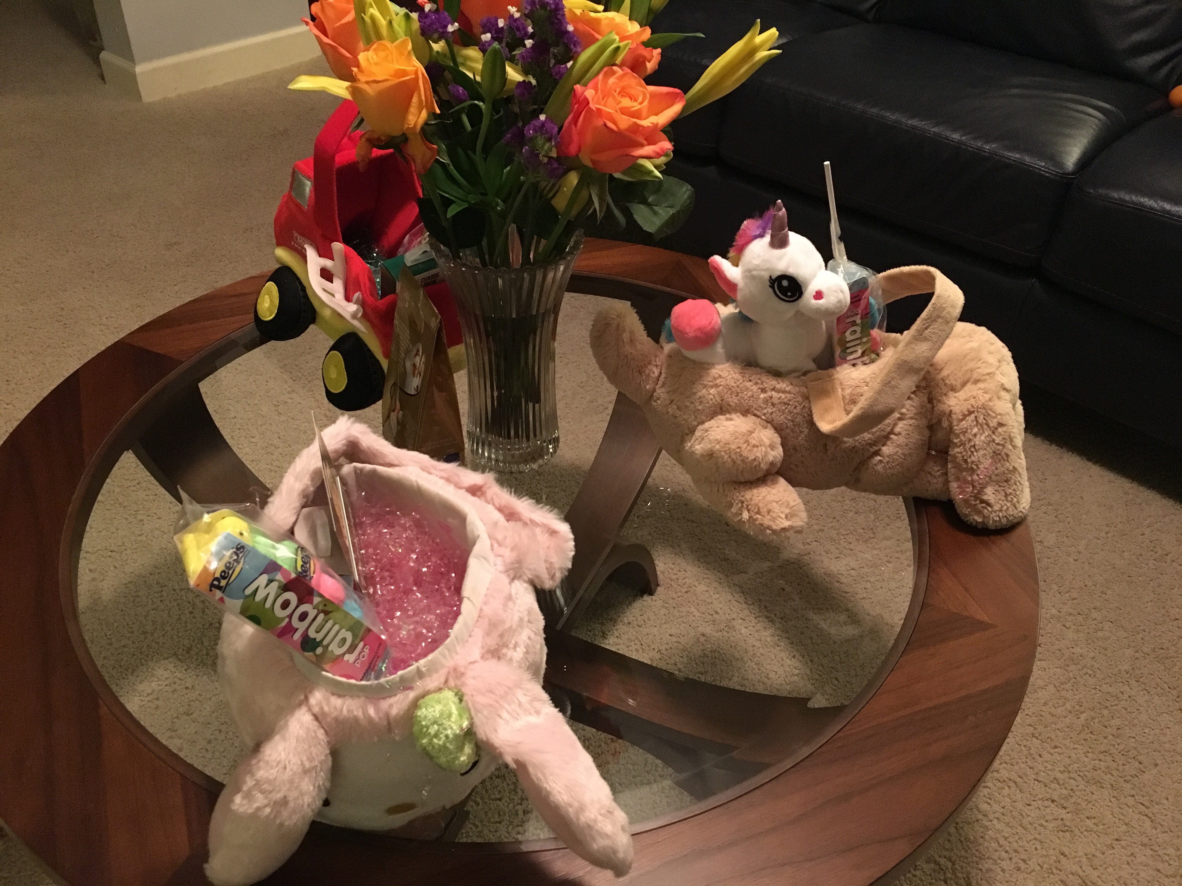 Godisfyllda plastägg är gömda runtom vårt hem och en förväntansfull Lillasyster ligger säkert fortfarande vaken uppe i sitt sovrum. Hon verkar tro på det här med både jultomten och påskharen ännu, eller är det kanske helt enkelt en vägran att inte tro på att det är mamma och pappa som sköter om dessa saker….?