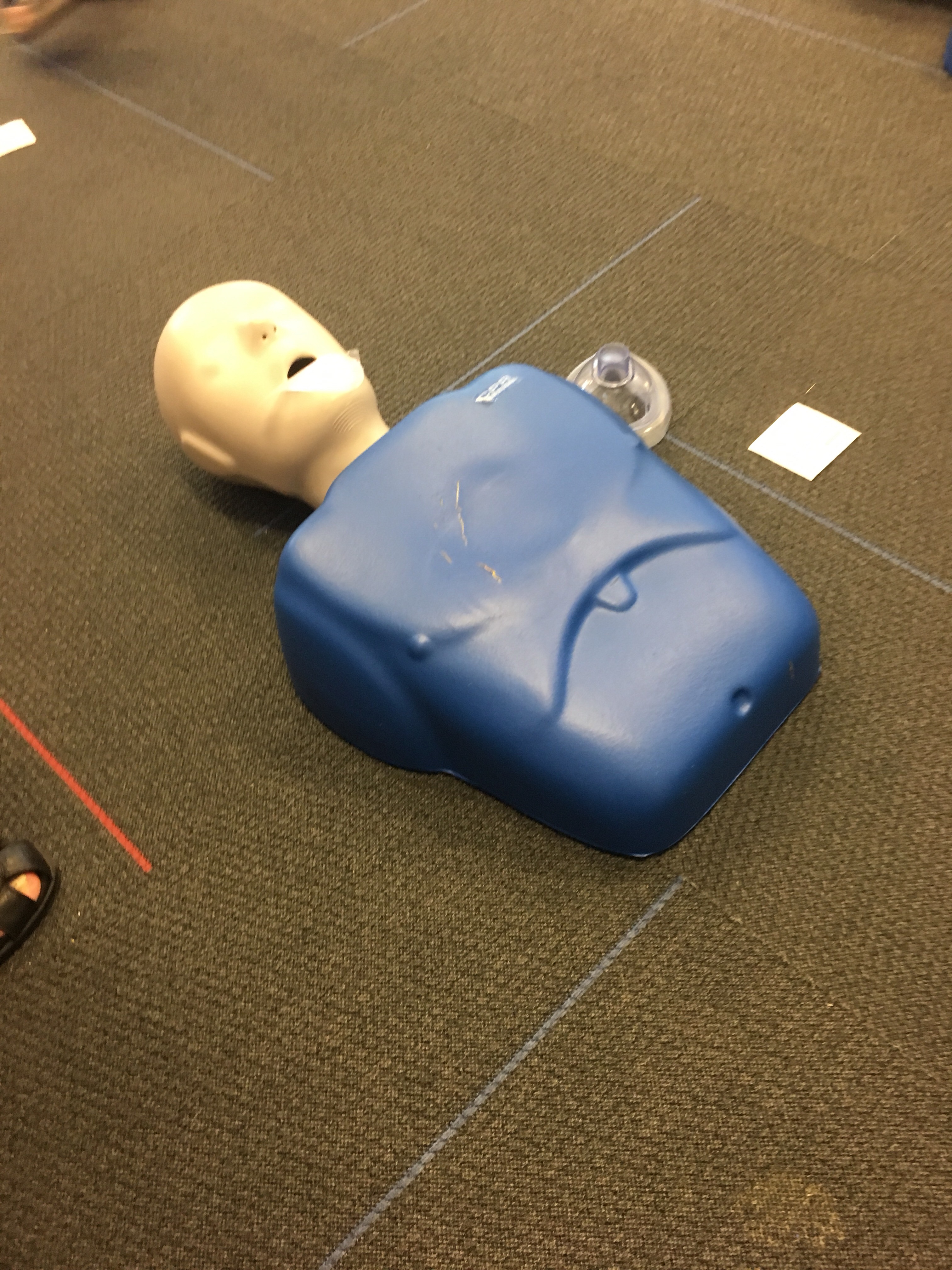 Det var dags för en snabbkurs i att ge första hjälpen och återupplivning. ( tror jag att det heter på svenska i alla fall…)