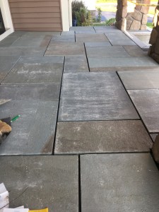 Golvet på verandan gjords färdigt idag. Murbruket torkar som bäst och vi har stränga order att inte gå på plattorna under hela inkommande helg.