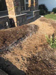 Cementgången togs upp just innan karlarna avslutade dagen. Blommorna och buskarna som Maken planterade för 7 år sedan är nu ett minne blott och förhoppningsvis börjar de nya blommorna planteras imorgon, fredag…