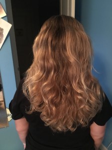 … ja då blir det ngt vågiga håret nästan lockigt! Vi genomlever helt tyspiskt augustiväder och det är fuktigt och hett. Längtan till hösten gör sig påmind, redan vid niotiden på morgonen är det långt över tjugo grader varmt. Mitt hår, som alltid varit vågigt, njuter i fulla drag av fukten och blir riktigt lockigt nästan. Så här såg det ut igår kväll efter en dag i hästsvans. Bara att tacka och ta emot…! 😉