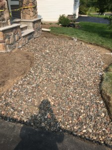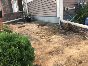 Gången fram till vårt hem är borta och förberedelser har gjorts för en ny sådan. Bredare och med finare material än bara betong.