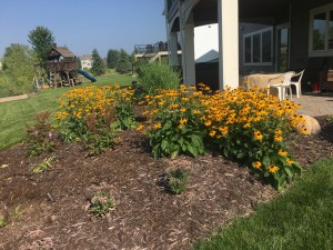 Åtminstone mår blommorna bra som planterades förra sommaren och blommar så fint just nu. Dessa heter Black eyed Susan på svenska. Vet inte om de finns hemma i Norden.
