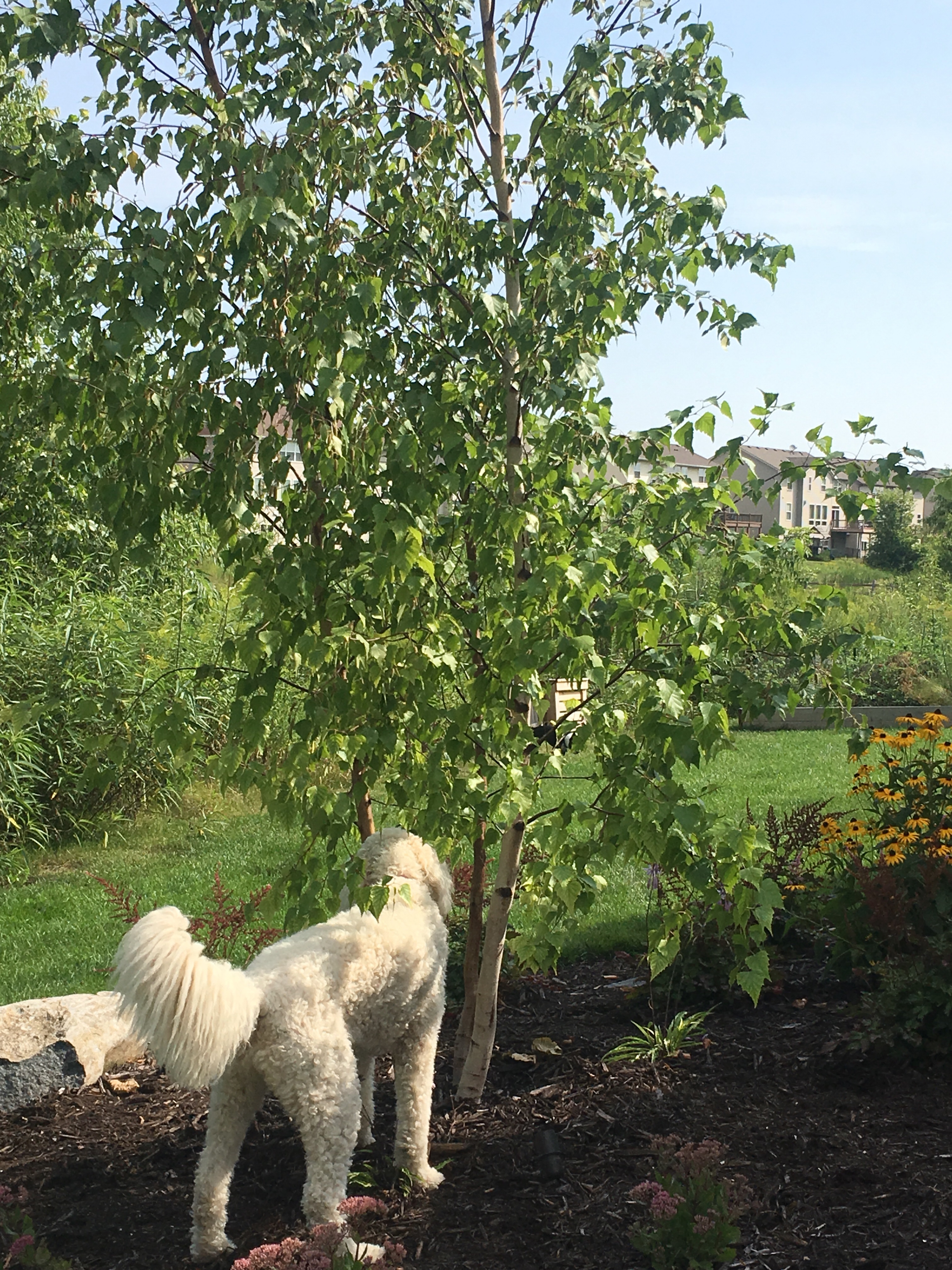 Hon har just planterats! Vår nya, fina River Birch, eller Svartbjörk som den svenska versionen av Wikipedia föreslår att den heter hemma.