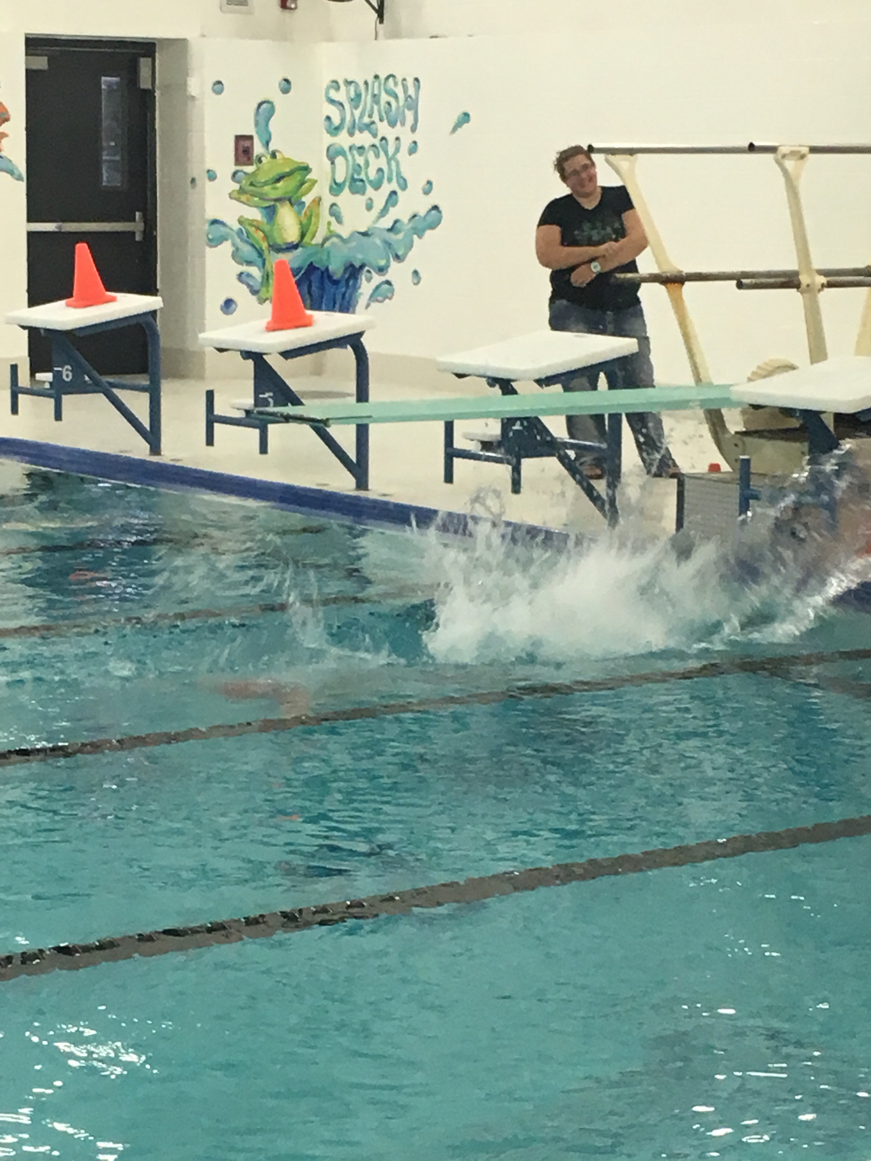 Detta är alltså orsaken till varför hon sprang iväg så snabbt. Vi kom till gymet strax före det var dags att hoppa i simbassängen och hon behövde fortfarande byta om till simdräkt. Det blev lite bråttom.