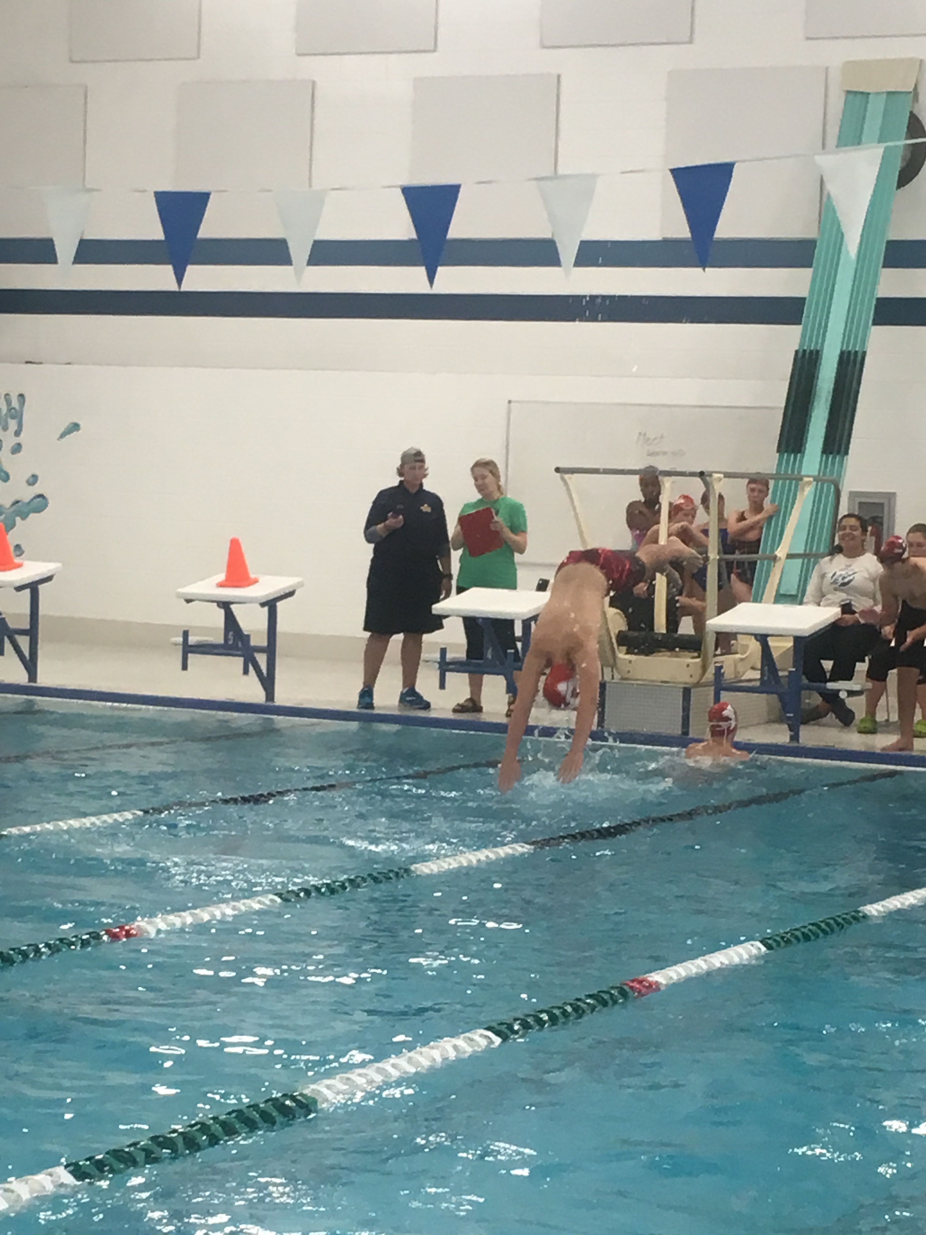 Sonen dyker ner i bassängen för att ge sig på sin favoritgren: 200 yard free style.