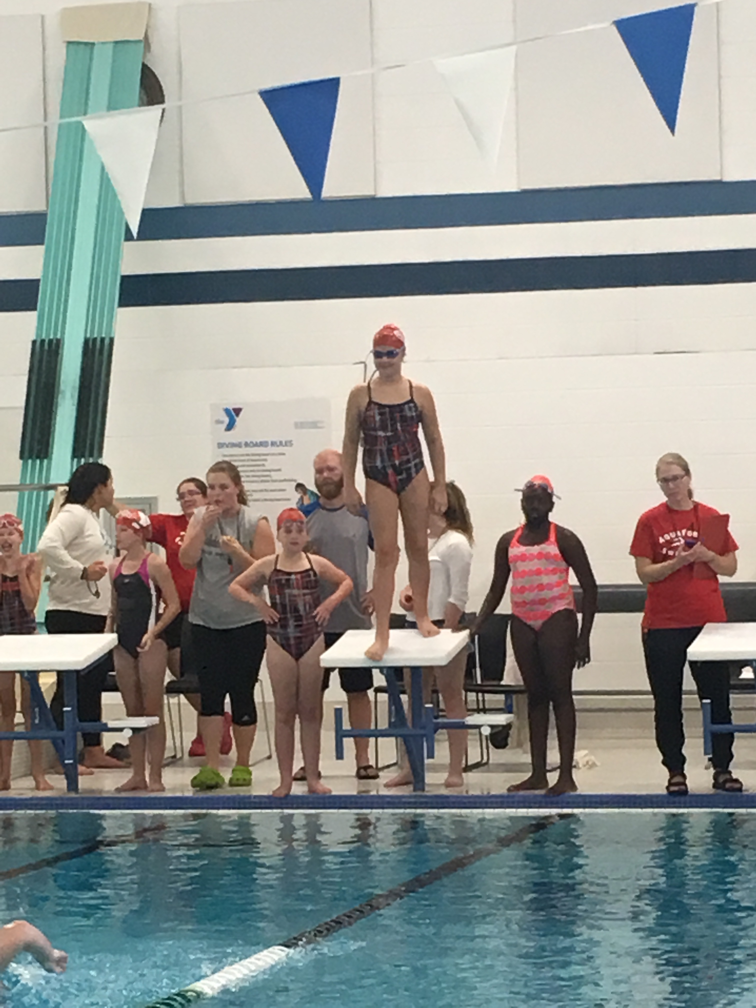 Lillasyster klarade sig enormt bra och vann till och med sitt heat i ryggsim! Vet inte hur hon placerade slutligen, men själv var hon mycket nöjd.
