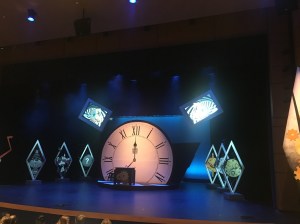 Sonen är ingen skådepselare, utan har jobbat i många veckor tillsammans med andra elever och regissören att planera och bygga kulisserna, som ni kan se ovan. Nu under förra helgen och denna helgs föreställningar agerar han ljustekniker och befinner sig högt upp i luften, strax under taket för att rikta strålkastarna åt rätt håll vid rätt tidpunkt.