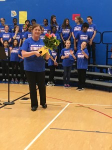 Föräldrarna hade samlat ihop pengar till en tackgåva åt henne. Det blev en vacker blombukett och ett gåvokort på USD 350!! Eftersom kören bestod av 60 elever totalt, blev det en nätt, liten summa i gåva också!
