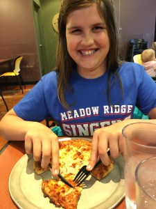 Efter en välsjungen konsert, med till och med ett kort solo, behöver man definitivt få sin favoritmat. Eller vad sägs om ostpizza på pizzarestaurangen som är Llillasysters absoluta favorit!