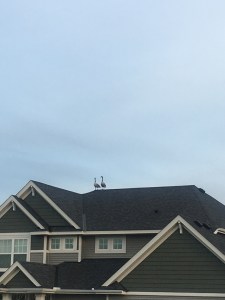 På grannarnas tak satt Herr och Fru Gås tidigare ikväll och förde en höljudd diskussion om ngt. Kanske fru Gås skällde ut Herr Gås för ngt han gjort eller inte gjort, vem vet? Lillasyster härmade dem några ggr och de såg ner på henne nästan förvånat. Lite som att de undrade hur hon hade lärt sig prata ‘gås’!