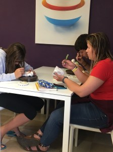 Efter att ungdomarna hade valt ut der som de ville måla, valde de färger och penslar och började på. Nu skulle det koncentreras och målas och faktum är att de faktiskt satt stilla i två och en halv timme och jobbade på.