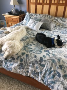 Maken hämtade hundarna från hundhotellet ( nåja, hotell och hotell. Det är veterinären som också tar emot ett antal hundar som behöver någonstans att bo om ägarna är bortresta.) imorse där de tillbringat den senaste veckan medan vi var i Wisconsin. Vi var helt säkra på att veckan hade gått bra för den större och äldre hunden Lilly, men eftersom den yngre och mindre hunden Fiona inte har världens lättaste temperament att ha att göra med, var vi inte så säkra på hur det hela skulle gå.