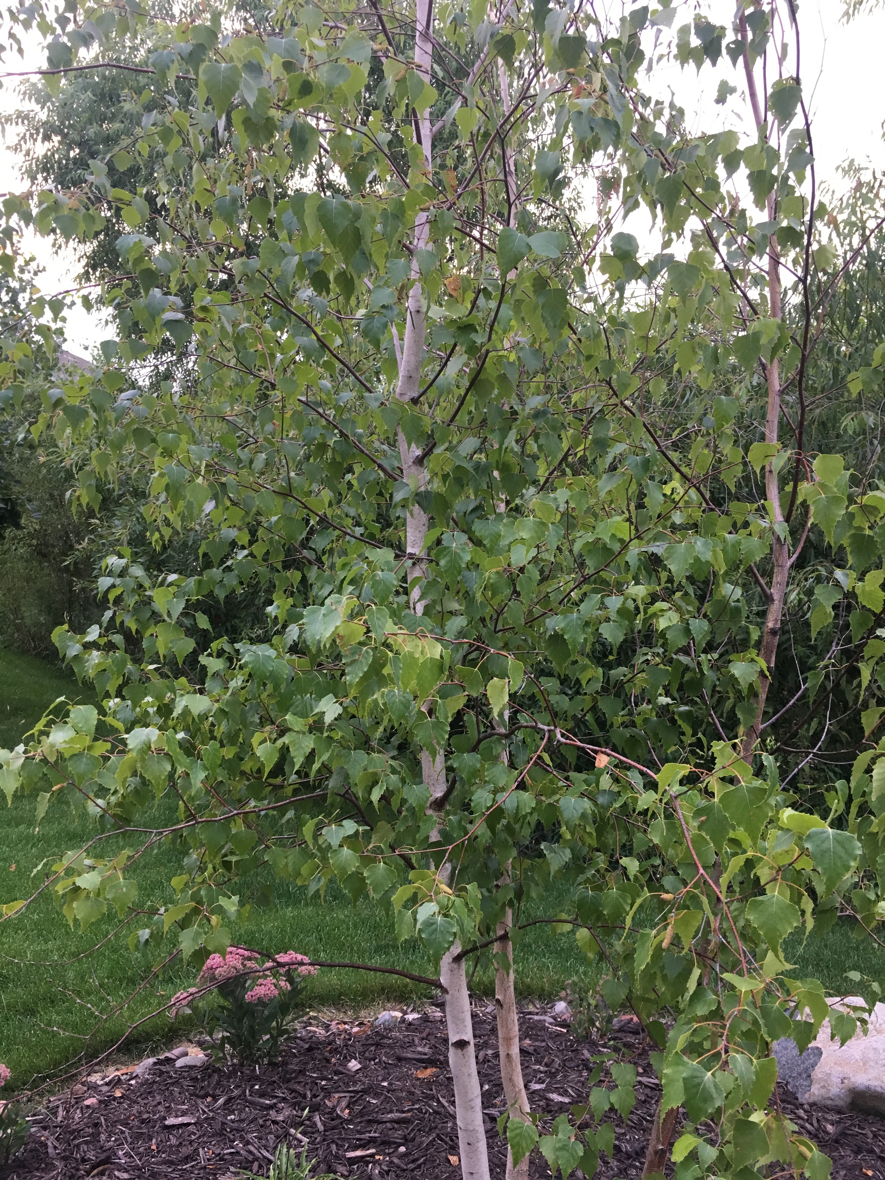 Och den där svartbjörken då som jag var så orolig för i våras? Jo, som ni ser mår den väldigt bra och har belönat oss med vackra (nästan) vita stammar och vackert gröna löv. Om vi får en lika sträng vinter som vi fick förra vintern, lär nog björken överleva eftersom den klarade sig så bra förra vintern trots att det blev så väldigt kallt där ett tag i januari!