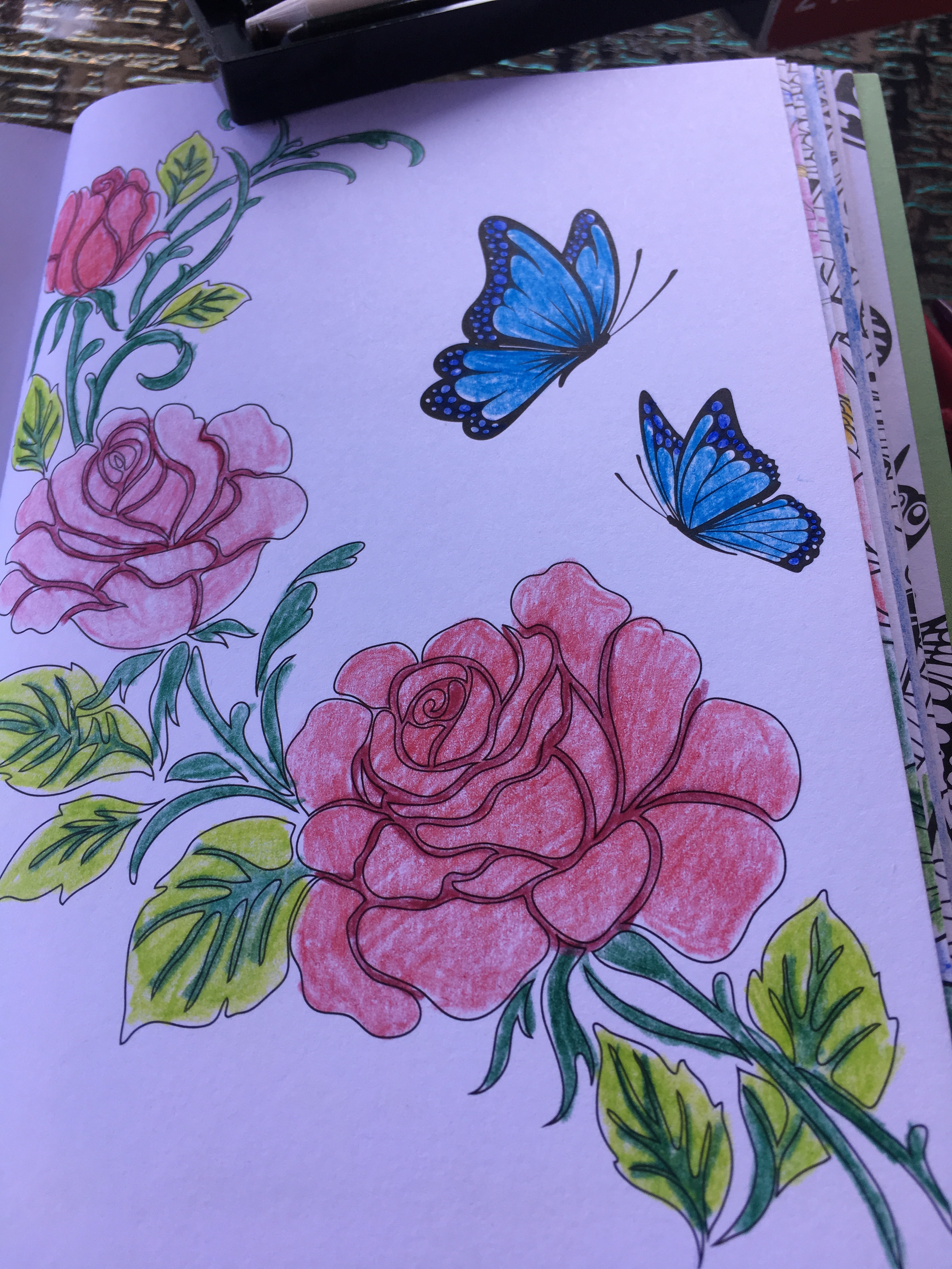 Denna lilla bok som jag just nu färglägger i är gjord i vykortsformat, så när alla 24 är färglagda börjar jag kanske skicka dem kors och tvärs över Potten och då kanske det blir just DU som blir mottagaren. Vem vet? 😉