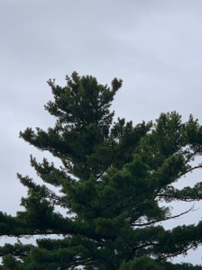 Högt där uppe satt han och nästan pep igår. Jag har aldrig hört dessa mejstästiska fåglar låta förut och trodde först det var en katt som nästan jamade och skrek. Då märkte Maken att det faktiskt är denna jättelika, amerikanska symbolfågel som låter så där ynkligt och skrikigt. Det är nog inte efter sina läten dessa fåglar har fått sitt hedersuppdrag att vara symbol för detta jätteland! ( Han är svår att hitta där uppe i jättetallen. En ledtråd, se på den högra sidan av tallen.)